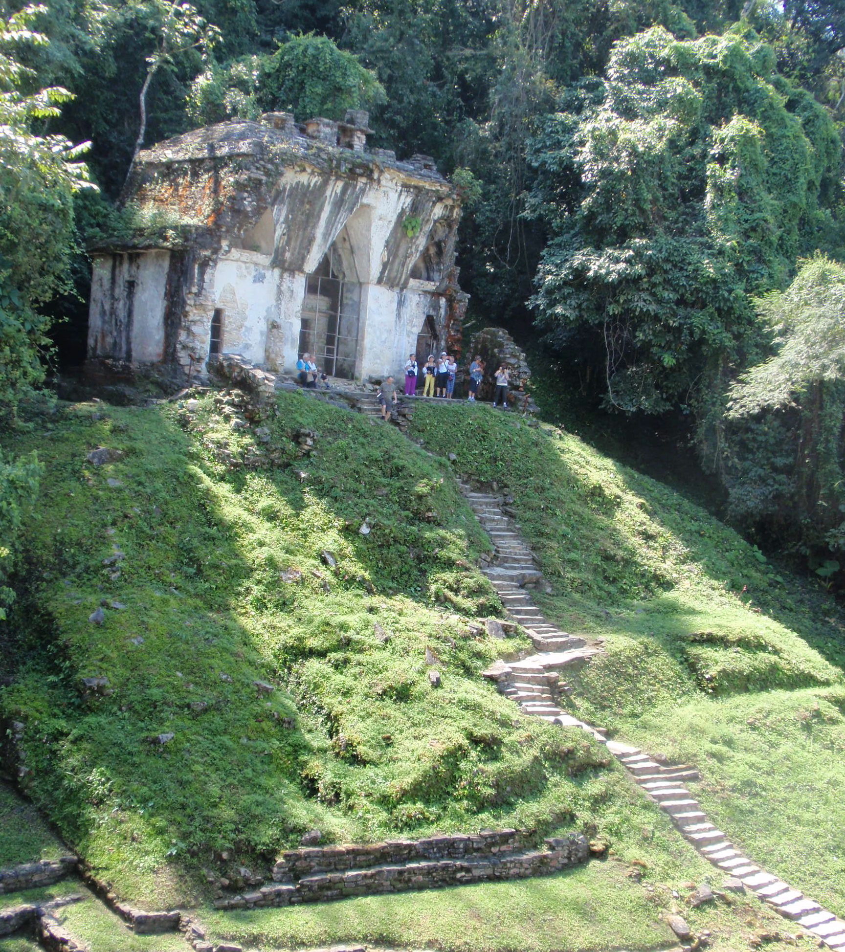 Palenque is one of the most important archaeological sites in Mesoamerica, housing some of the finest architecture, sculptures and bas-relief carvings that the Maya produced. It was also influential because Palenque was where royalty lived. As expansive and fascinating as this site is, archaeologists believe that only about 5% of the total city has been excavated, with 95% still buried under the jungle floor! It was one of the largest Mayan cities during its time (100 BC – 800 AD), with a population of 25,000 – 30,000. It is estimated that there were 1453 buildings constructed, so approximately 1400 still remain underground.