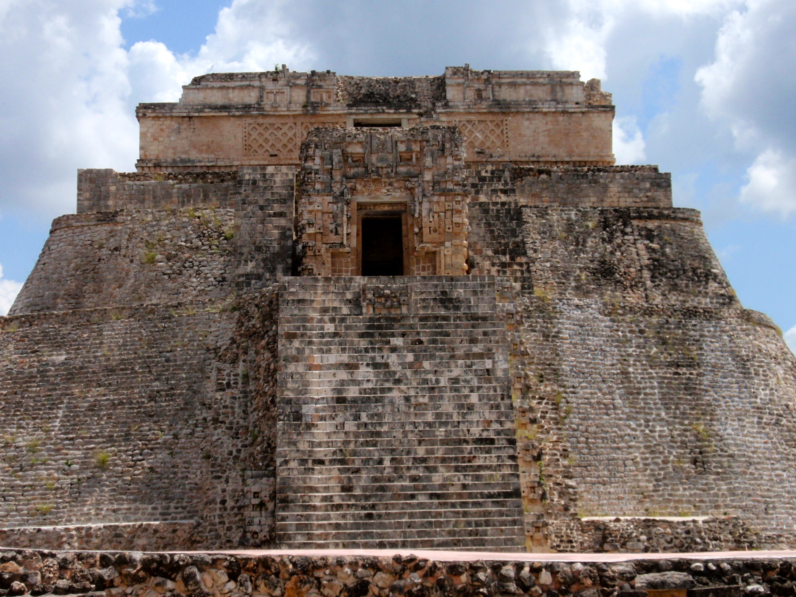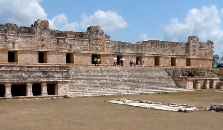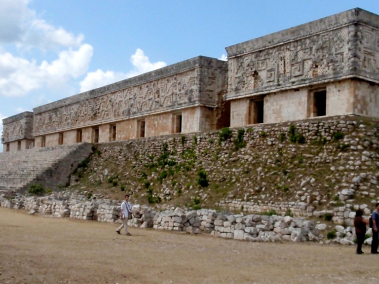 The Palace of the Governor is regarded by many as one of the best examples of Puuc architecture in existence today. It was the final building constructed at Uxmal and was probably the administrative center within the city. It actually is comprised of three buildings, connected together. Its grand staircase consists of 52 steps, which is a significant number in Maya mythology. This structure was very difficult to build due to the platform on which it sits.