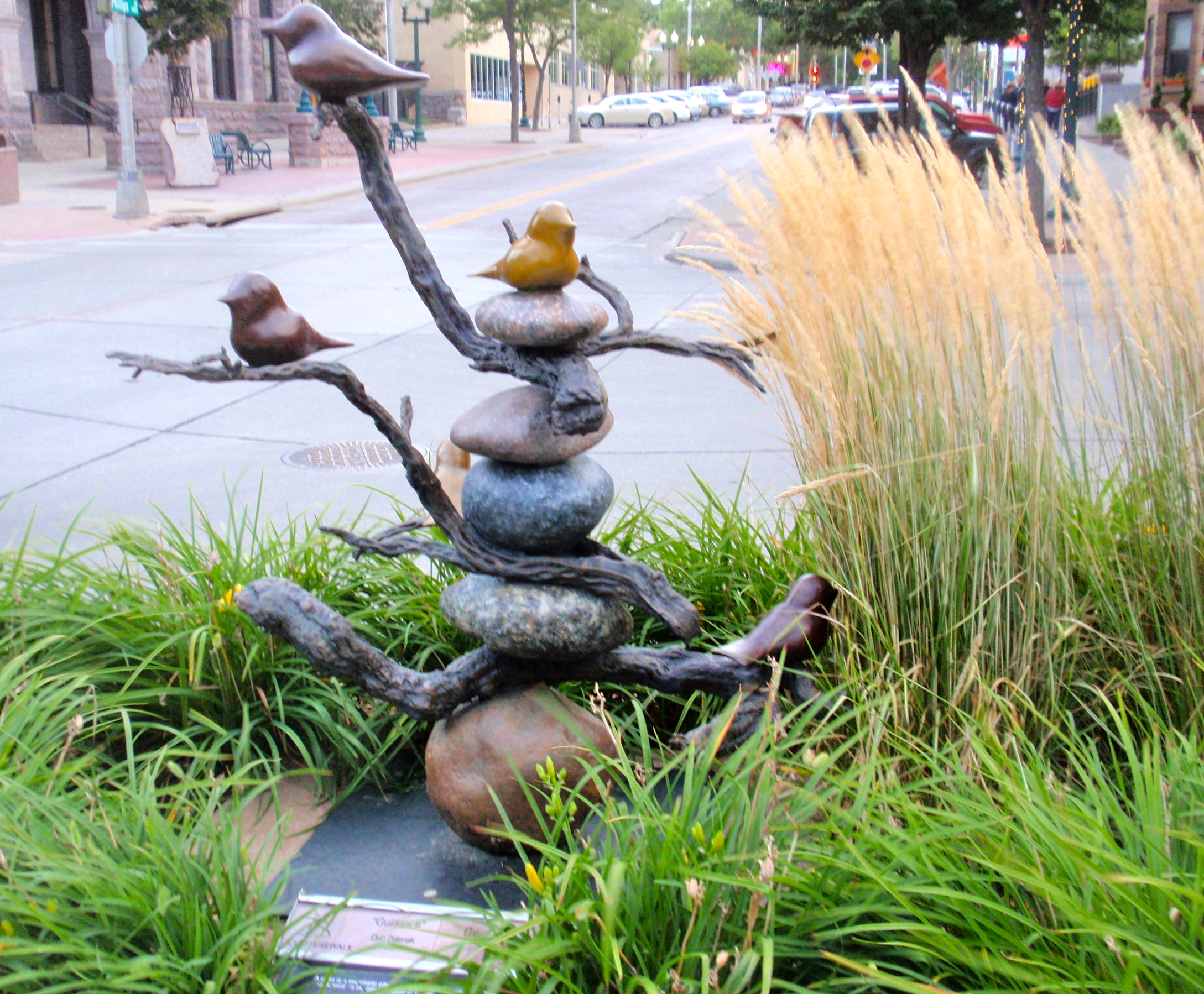Our last evening in Sioux Falls was spent strolling downtown, checking out the nightlife. Surprisingly there was lots of activity going on, friends enjoying drinks and dinner at sidewalk cafes, various little music venues to appreciate, unique shops to entice, and the most varied display of bronze figures sprinkled throughout the downtown area.