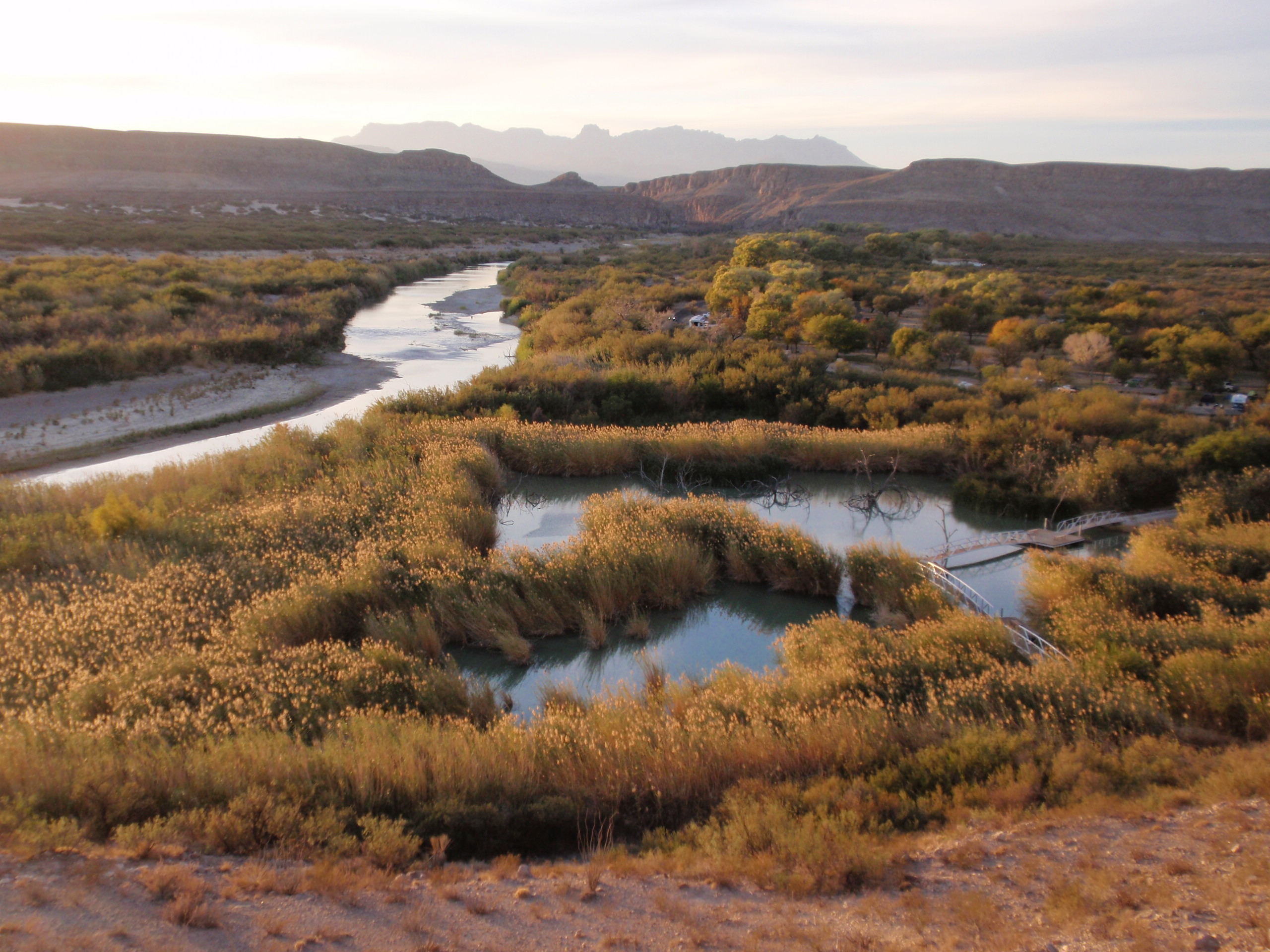Given that we came to the park in the “shoulder season”, the hot springs were ours, with no crowds to fend off. With Terry scouting for other hikers on the trail (we had not seen any to this point), I decided to change into my swimsuit in the open. I made a quick change, no problem, (or so I thought) unless you would call a photo-shooting hubby a problem. As I turned to get into the hot springs, across the Rio Grande (did I mention it is a narrow river) are three horses and two young Mexican men, looking across the river. Suffice it to say, I did not offer them my most flattering side for their viewing pleasure! Oh well, no danger of running into either of them anytime soon! After a luxurious soak in the springs, we hiked back out to the trailhead.