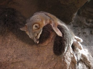 We had the opportunity to view a couple of wonderful programs at the desert museum, the most remarkable being the Raptor Free Flight program. We got an up close bird’s-eye view of a family of Harris’ hawks on a hunt. The narration was terrific and it was so thrilling to watch this family of four soaring overhead and alighting on saguaro cactus. How do they do that? Very carefully, of course! Many times their flight paths took them literally within inches of our heads. This program showcased how these magnificent hunters cooperatively work in their native environment and they were successful in the hunt!