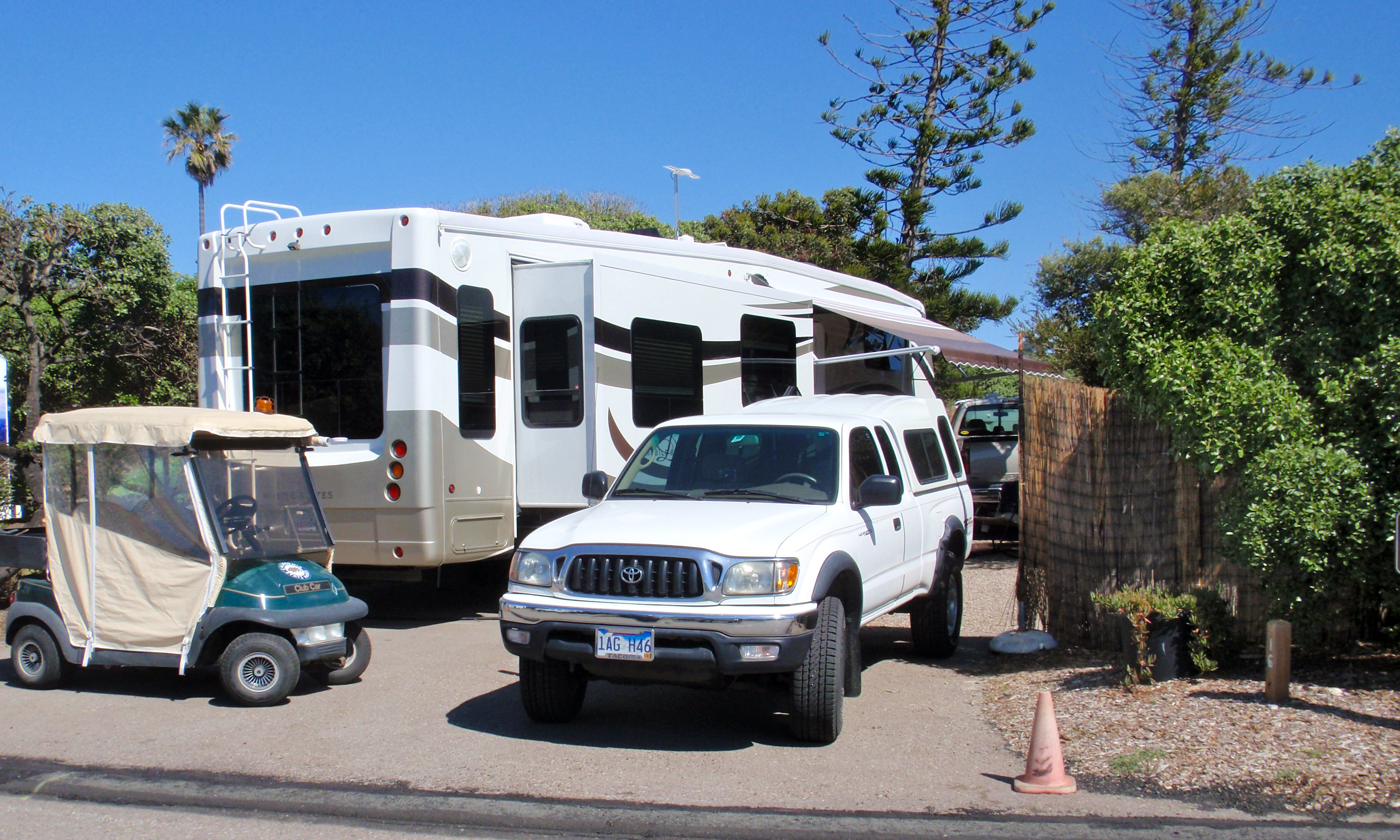 Our day started with the question “can we get our rig out of this tight space after four months of sitting?” Bragging on my hubby for a bit, he did a fine job! And we were off, heading north to a little out-of-the-way rec area that would afford us some down time and the ability to visit Santa Barbara and the Channel Islands. We left shortly after 10am and counted on a normal 200 mile day, getting us in at about 2pm. What started out as normal became anything but.