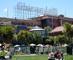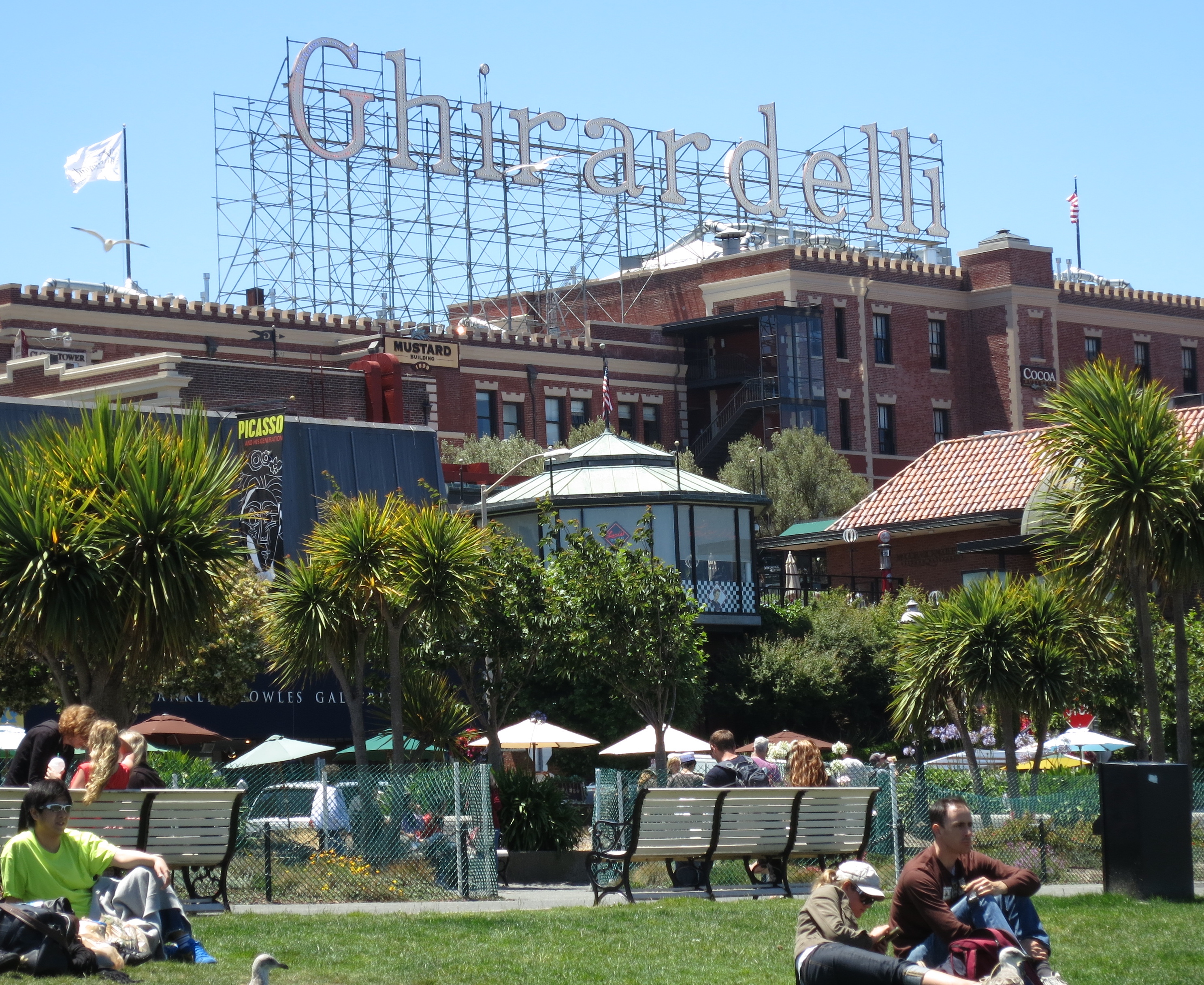 A walk through Ghirardelli Square, looking out over the harbor to Alcatraz, then on to our chosen destination, the Buena Vista Bar & Grill.  This is where my hubby and I tossed back a few Irish coffees many moons ago.  We were a bit more conservative today, I might add.  Besides the anticipation of watching the Irish coffees being made in mass to drinking said potent concoction, we were very surprised to see bartender Larry still standing behind the bar, as if he had never left, and I guess he hadn’t!