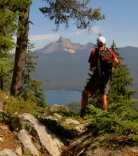 Terry overlooking Diamond Lake and Mt. Thielsen, from Mt. Bailey trail
