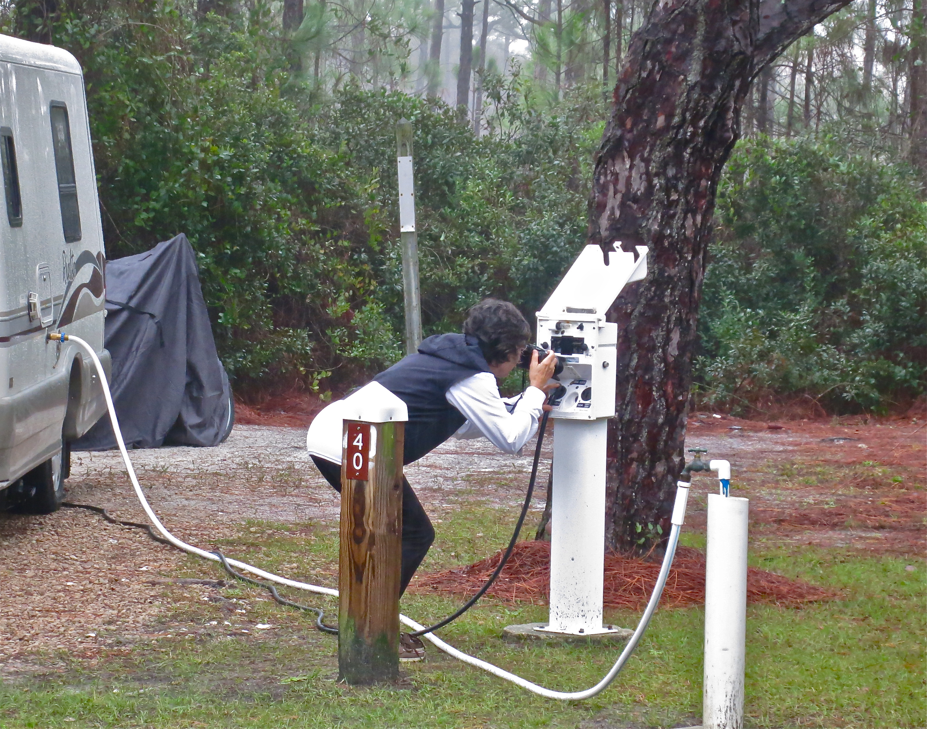 We are snuggled into St. George Island State Park, and although fog and rain have been plentiful, the sun has yet to make an appearance.  Rumor has it that we may see this golden orb sometime tomorrow, which would be wonderful as we hit the road on Monday.