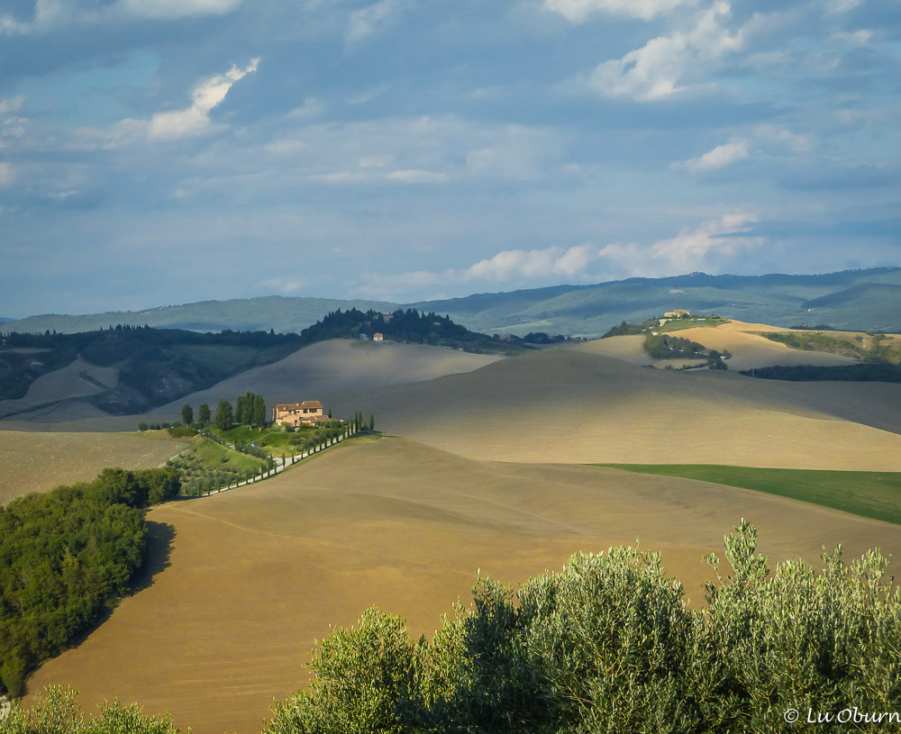 I found the starkness of the landscape, with only a single villa, a few cypress, and a spot of green among rolling hills of clay quite beautiful.