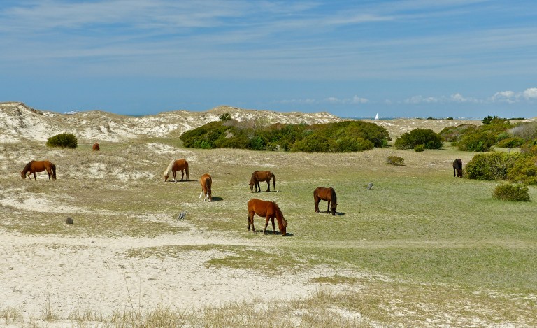 Cape Lookout Lighthouse, whose structure is very similar to that of Bodie and Currituck, stands 163 feet in height, with 207 interior spiraling steps that can be traversed during summer months. Not unlike Ocracoke, it must be accessed by small ferry from Harker’s Island, and if you are lucky on the ride over, you may spot the wild ponies of Shackleford Banks.