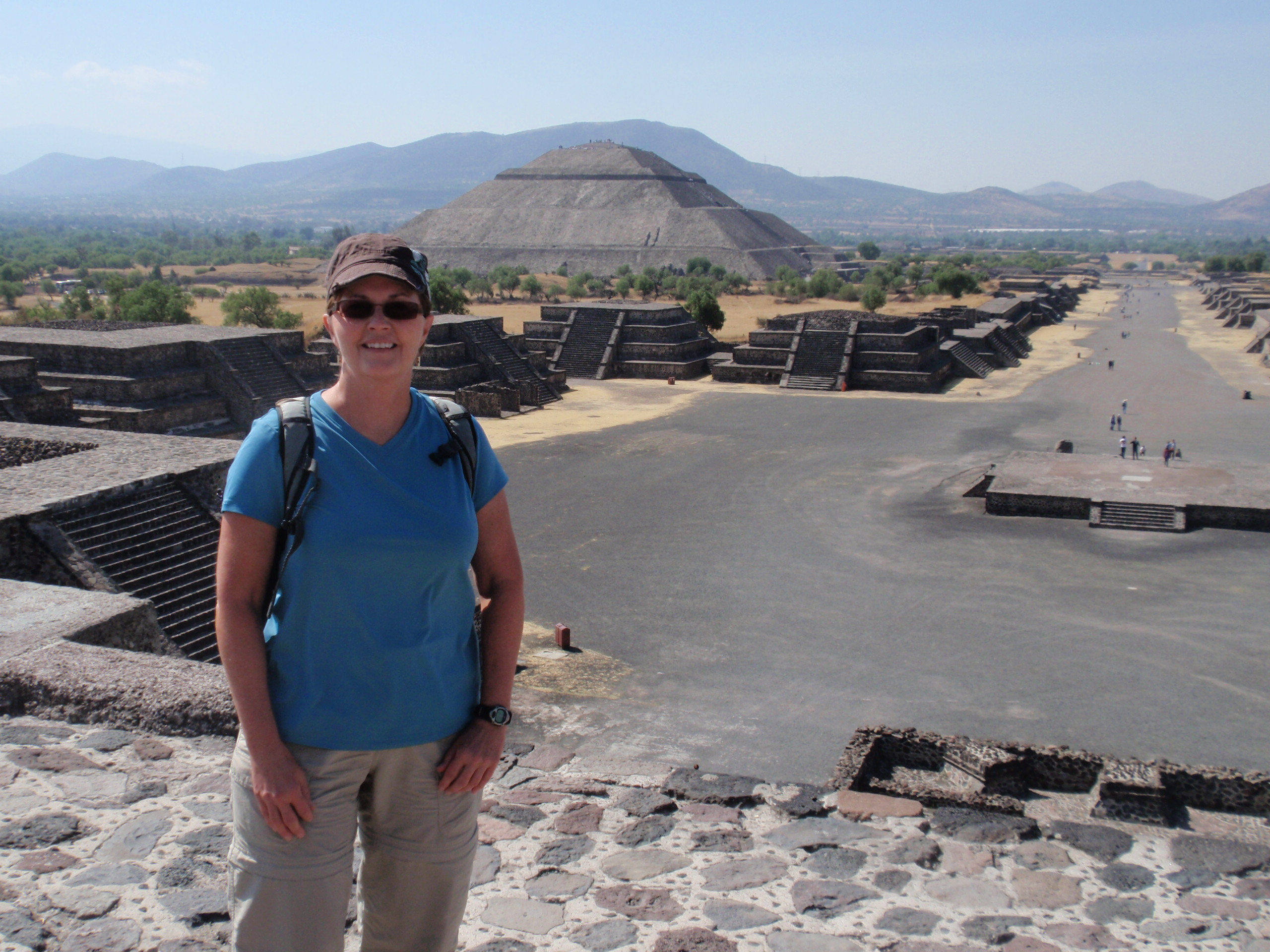 Terry is standing on top of Pyramid of the Moon, with Pyramid of the Sun in the background.