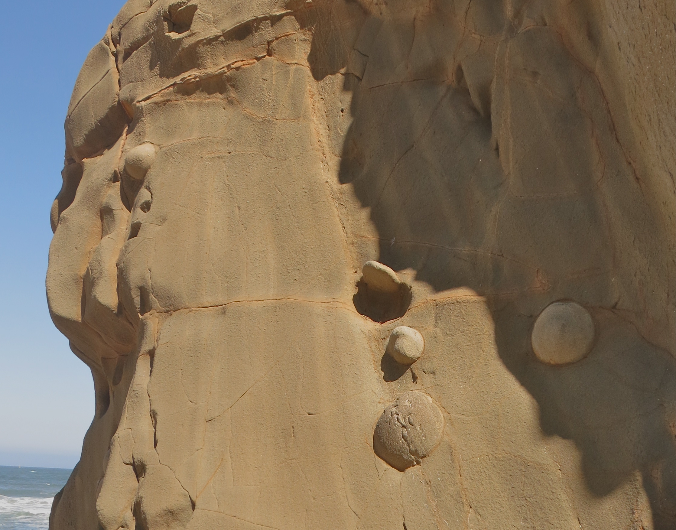 On a rare sunny, rain-free day I pointed the car north on the hunt for longhorn steer and cannonball concretions. While the steer remained elusive, I found the concretions hiding in the shadows.