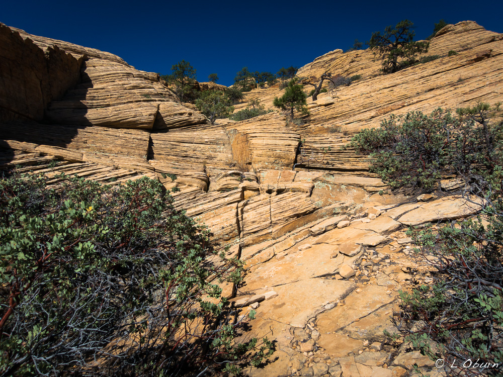 Although we would not suggest this as the soundest or safest way to get to the saddle of Cathedral Rock, what with the bush-whacking and boulder-hopping, it was certainly a unique approach. What began as a moderate 5-miler ended as a very interesting 9-mile hike.