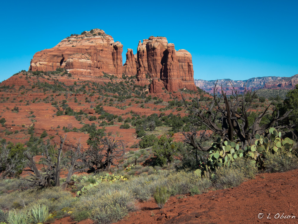 Views of one of the most-photographed sights in Arizona, Cathedral Rock, can be seen from many angles, and we soon found ourselves getting off our charted course to see if we could pick up a trail that would take us to the highest saddle point on Cathedral Rock. There is a designated, slick rock trail up to the saddle point but it was on the opposite side of Cathedral Rock from where we were. But did that stop us? Nope!