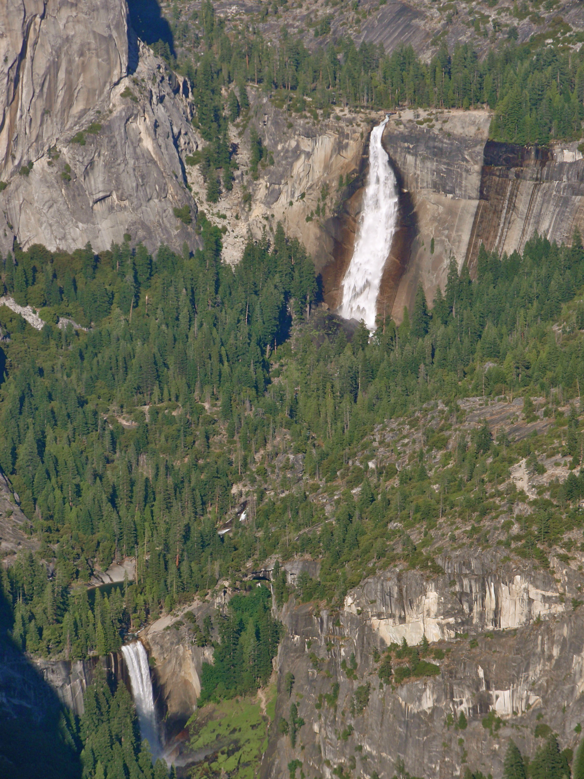 This hike begins at 7700′ and unlike the many switchbacks on the Kearsarge Pass Trail, it has a grueling long stretch of upward climbing. You can almost forget about how tiring this first section is by looking at the beauty around you. You catch a glimpse of the Middle Palisade Glacier on this stretch, and some lovely waterfalls. Once beyond the uphill slog the trail begins to zigzag through a slope of sagebrush, manzanita, and Jeffrey pine, before reaching Second Falls. And once again you are bewitched by the tantalizing smells and sounds enveloping you.
