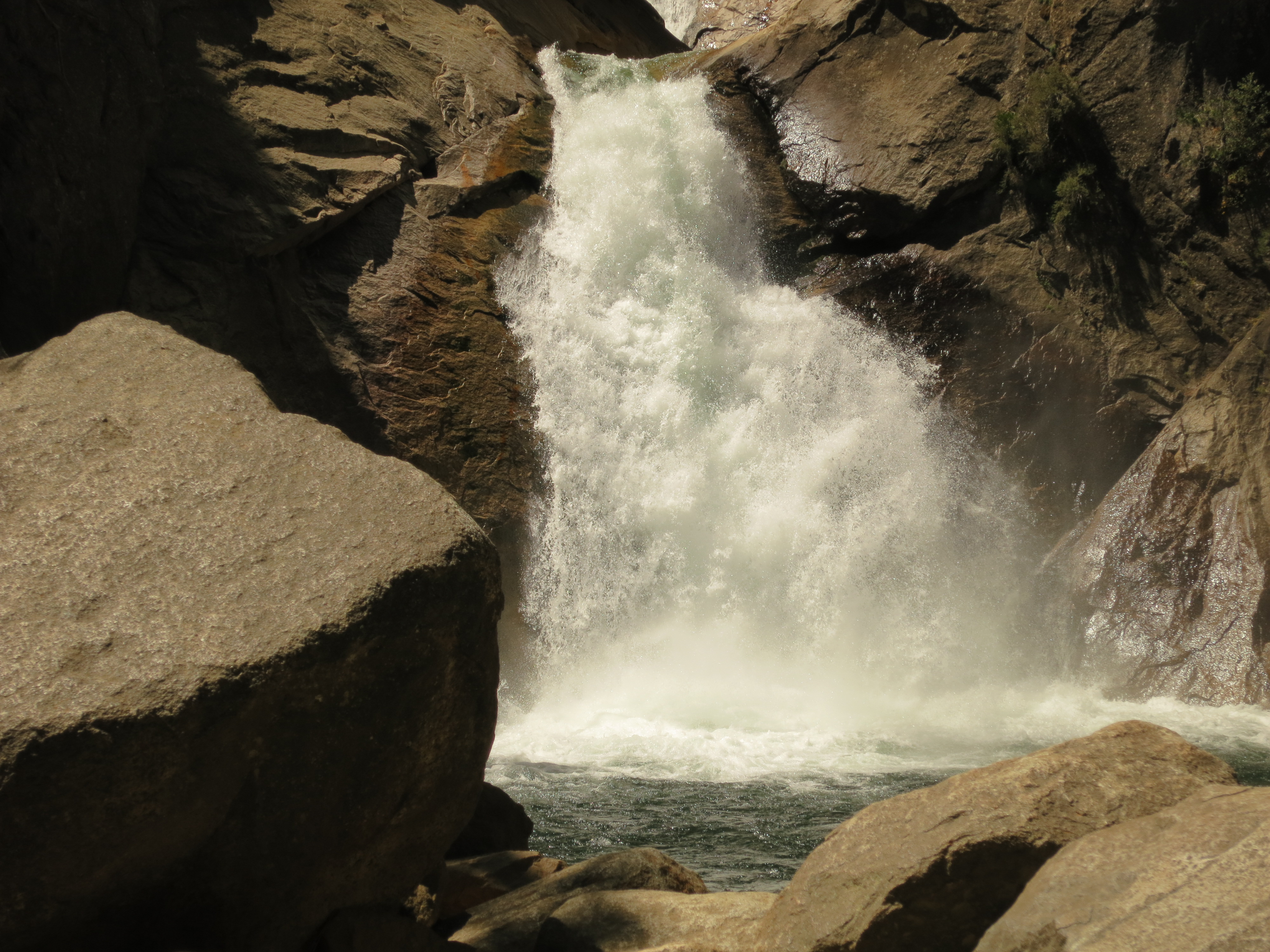 On our way out to the Cedar Grove area, a quick stop at the Roaring River Falls was a must. This thundering waterfall descends from the south wall of the canyon, flowing into the Kings River. A sort paved walk from the parking lot leads to it.