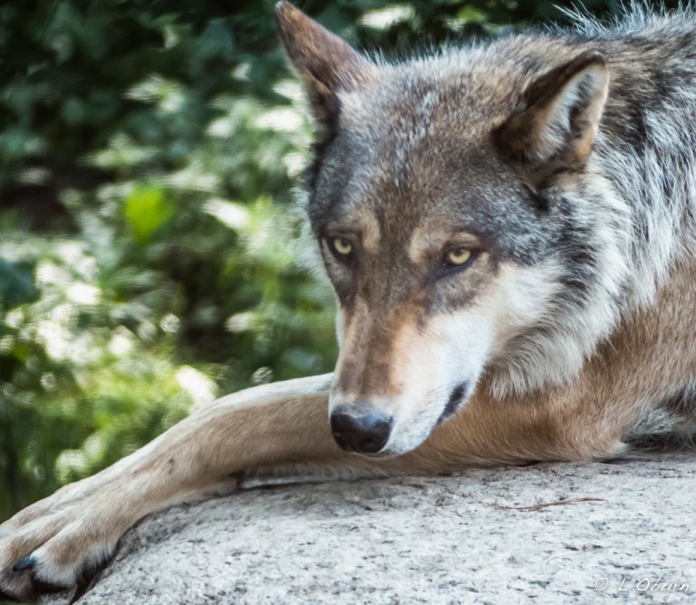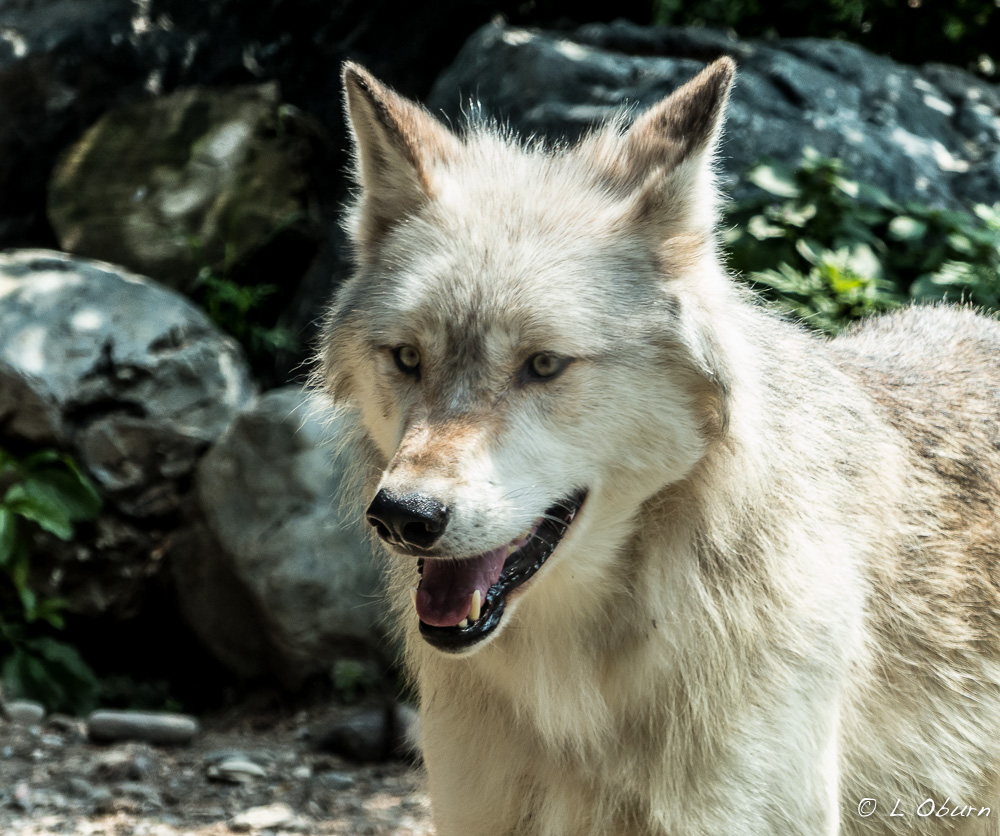 Little Luna, two years old and the only female in the pack, is a slim 91 pounds, but we were told she can hold her own when food is presented, often times taking more than her share. She and Boltz are of the Great Plains sub-species.