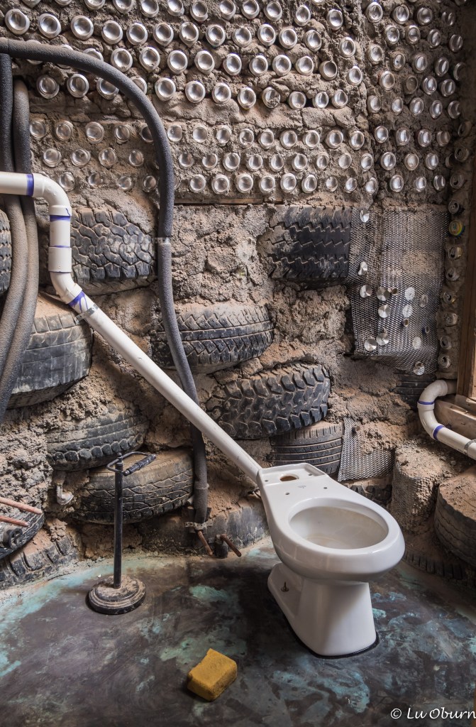 One American architect, Michael Reynolds, has taken this troubling dilemma of what to do with our trash one giant step further by introducing a unique concept, an “Earthship” passive solar home. His idea of incorporating trash that typically goes into landfills (think discarded tires, aluminum cans, glass and plastic bottles) into the designs of his homes, homes that are independent of the “grid”, has turned the homebuilding industry on its head. He is a staunch proponent of “radically sustainable living” and what he has created is quite fascinating and oft-times futuristic-looking. His vision came to fruition on a beautiful, barren mesa outside of Taos, New Mexico, back in the 1970’s, and it is at this main campus location that he has built a visitor center, Earthship Academy, and intern program.