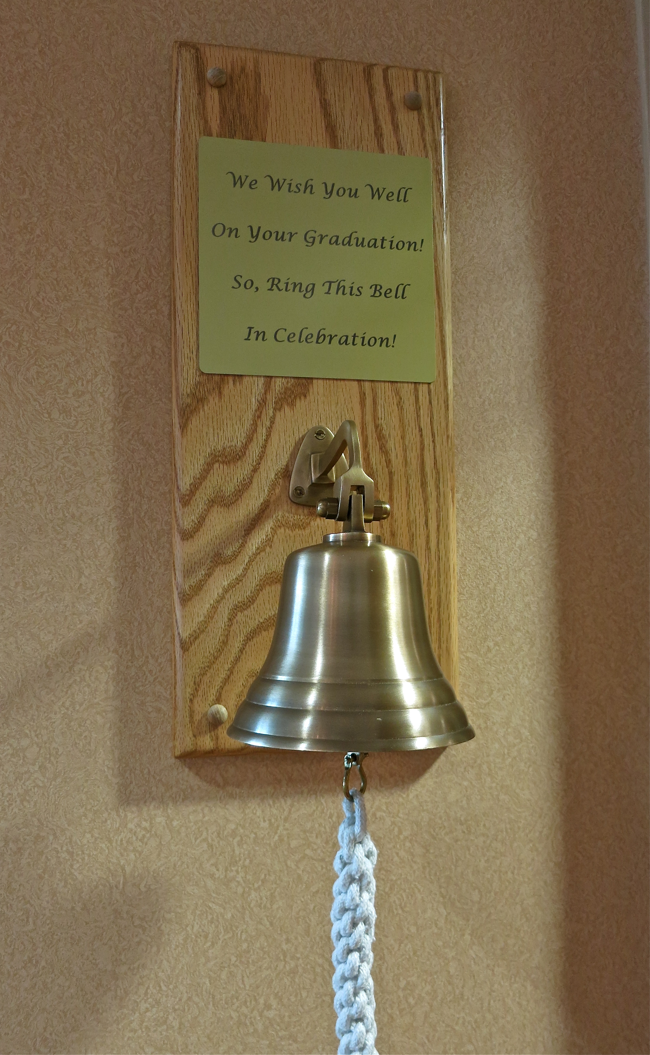 The symbolism of the ringing of bells has been widely recognized throughout the ages and spans the globe. They have been used to awaken us, mark the beginning and ending of religious services, summon lawmakers to legislative sessions, used in celebrations, warn of dangers…the list goes on and on. In this context, they serve as a rite of passage, for those who walk through these doors, heavy-hearted and fearful, and leave with hope in their hearts, grateful for the compassionate care given to them by the medical staff and the companionship of others whom they have met on this path.