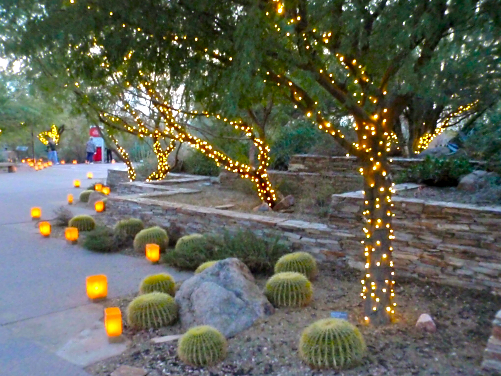 An event that was taking place while we were in Phoenix was Las Noches de las Luminarias (the nights of the lights) at the Desert Botanical Garden. These gardens are some of my favorites and we absolutely loved this event when we last attended it. It did not disappoint us this time either. It was a magical experience to wander through the 50-acre garden with more than 8000 luminarias lighting the paths. With 10 musical groups performing nightly throughout the garden and a delectable dinner provided, it was a truly enchanting evening. Anyone visiting Phoenix should put this on their must-see list, as it is a wonderland of arid plants from around the world, aromatic herb gardens, wildflower gardens bursting with color, artwork, and birds of the southwest.