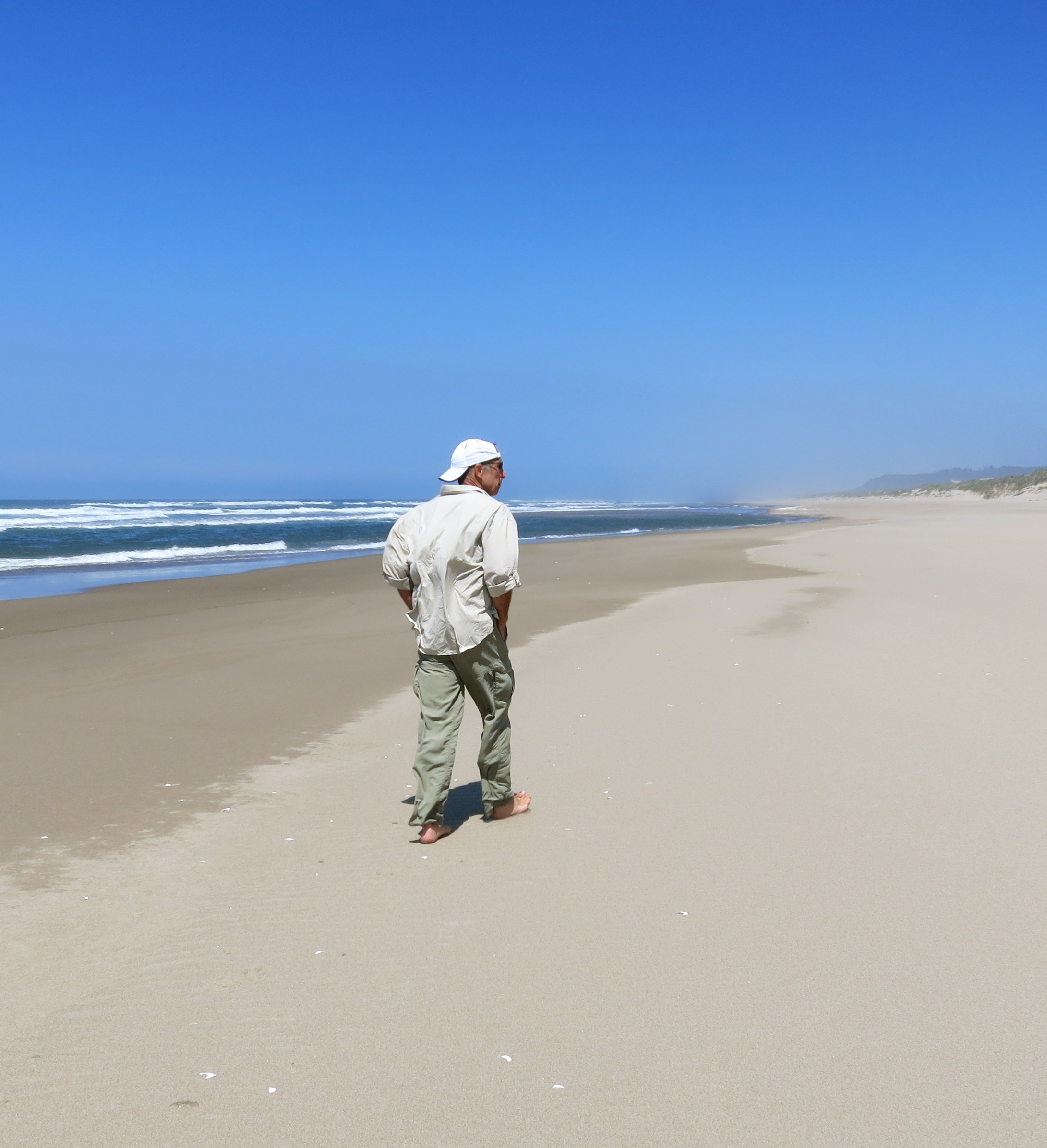 Our escape route was finally made known and we were helped down from the rim. Pablo assured us there was no danger, then proceeded to begin running down the steep dune, encouraging us to join him, running in a zigzag fashion. We all giggled as we sank to our shins in loose sand. Halfway down we stopped on a ridgeline for photos and removed our shoes. There was nothing better than pulling off hiking boots we had lived in for the past two months and playing in the warm sand.