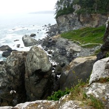 Patrick’s Point State Park was our first stop as it is just down the road from where we are staying at Sounds of the Sea RV Park. A quick 1/2 mile walk and we are there, meandering through dense forest of coast redwood, spruce, fir, and red alder, on our way to the Rim Trail. This stunning 4-mile path winds along the bluffs, providing views of sea stacks, barking sea lions lazing on the rocks below, crashing surf, and craggy cliffs. At the north end of this trail is Agate Beach, which unfortunately can’t be accessed from here right now due to a rock slide. If you are a tent camper, many of the sites in this park look amazing.