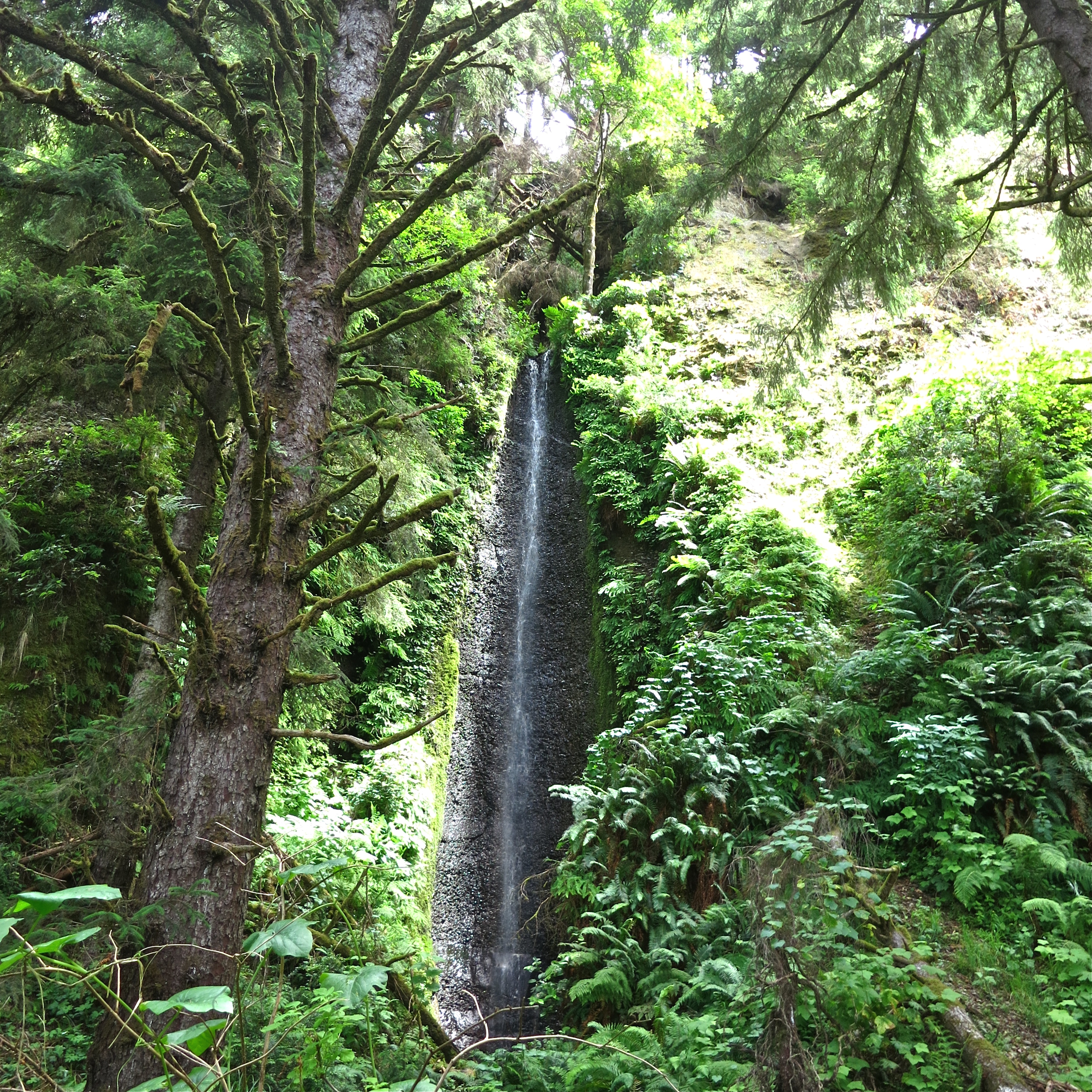 Surprise, a beautiful waterfall tucked into the forest sounded its arrival as we approached one of the final bends in the trail!
