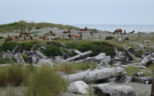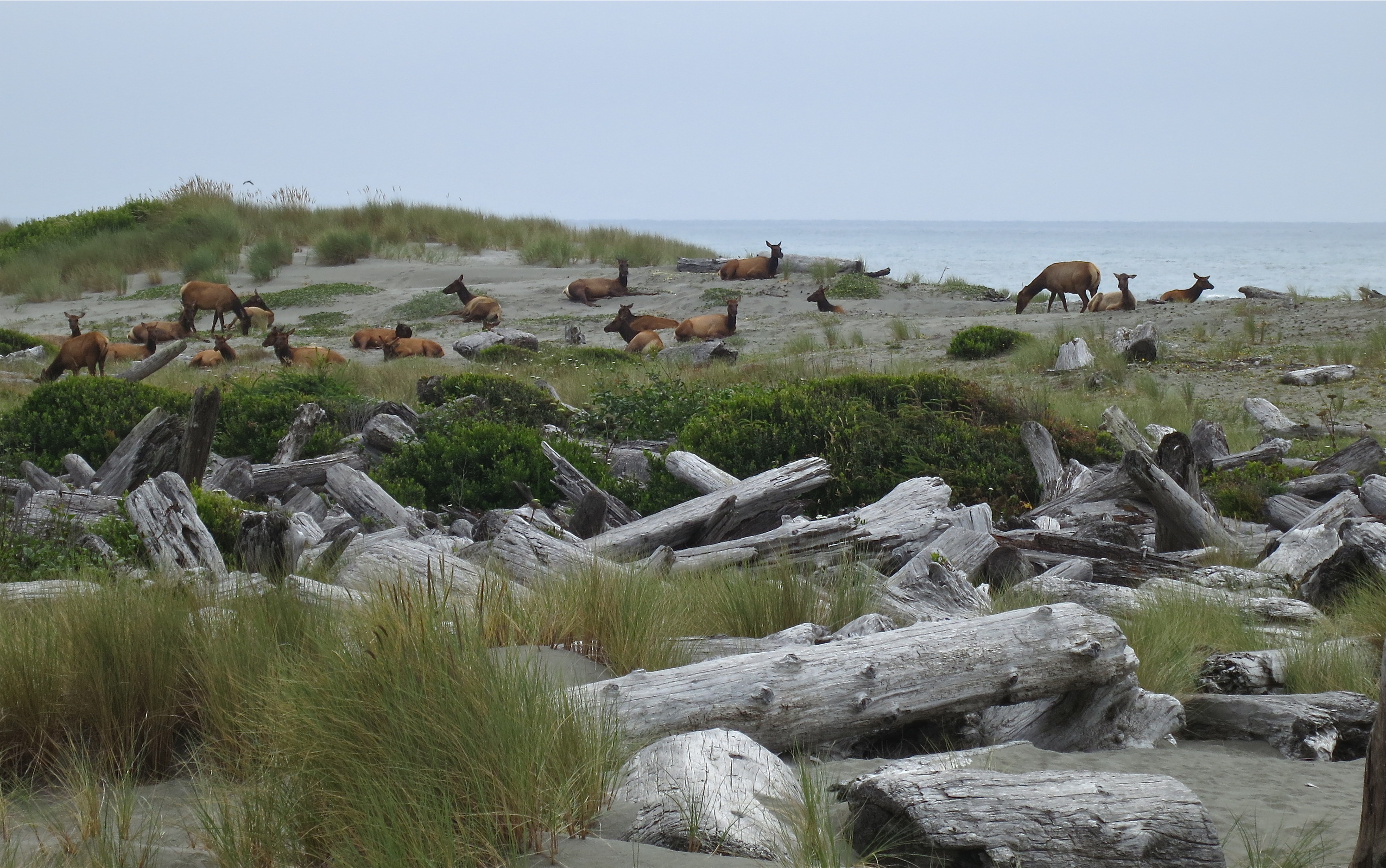 On our drive out of the park we were treated to a herd of Roosevelt elk, largest of the elk in North America, mainly residing in the rain forests of the Pacific Northwest. It seemed unusual to see elk in this environment, overlooking the Pacific, as we are accustomed to spotting them in the wilds of Yellowstone National Park.